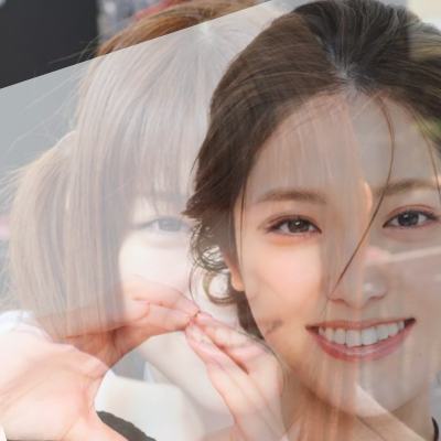 なんとここまでピタッと重なることがあるのでしょうか?!というくらい、目元の距離感、鼻筋、笑顔の口角の上がり方、歯並びの具合までぴったり。